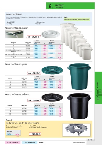 Diese Tonnen aus Kunststoff sind universell einsetzbar und sehr stabil. Sie sind witterungsbeständig und mit Info