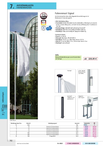 • Mastlänge 5 bis 9 m: serienmäßig mit Bodenhalterung