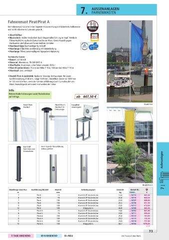 • Mast-Ø (unten/oben): 75 mm bei Höhe 7–8 m, 100 mm bei Höhe 7–10 m