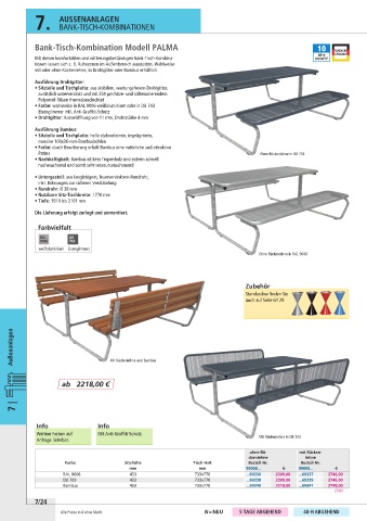 • Sitzteile und Tischplatte: helle stabverleimte, imprägnierte,
