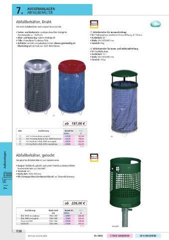 • Seiten- und Bodenteile: punktgeschweißtes Drahtgitter, 1 Abfallbehälter für Innenaufstellung