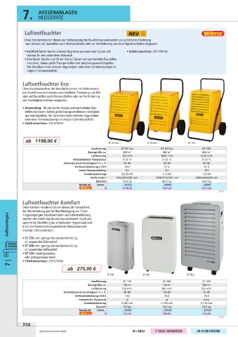 • Komfort-Serie: Geräte arbeiten Hygrostat-gesteuert und eignen sich • Elektroanschluss: 230 V/50 Hz