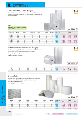 Breite Länge Folienstärke Rollen-Ø Kern-Ø VE/Stück Bestell-Nr. €/Rolle