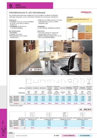Schreibtische: • Wahlweise mit 3 Schüben oder mit 1 Schub und Seite 9/9.