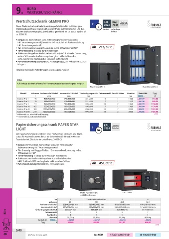 Modell Volumen Außenmaße* HxBxT Innenmaße** HxBxT Türdurchgangsmaße Ordneranzahl Anzahl Böden Gewicht Bestell-Nr.