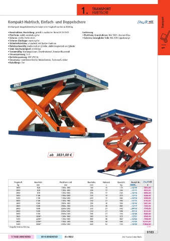 Kompakt-Hubtisch, Einfach- und Doppelschere Transport