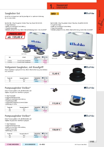 Set S2.4 BL: 2-Kopf-Saugheber Veribor blue line, Modell BO 602.4BL Set S 3.0 BL: 3-Kopf-Saugheber Veribor blue line, Modell B0 603.0BL