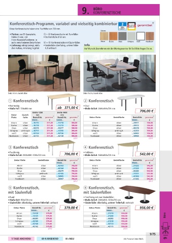 sechs verschiedenen Dekorfarben 5 + 6 Konferenztische mit Säulenfüßen Ahorn Buche Onyx lichtgrau weiß Nussbaum