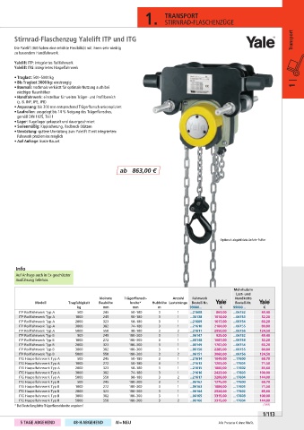 Stirnrad-Flaschenzug Yalelift ITP und ITG Transport