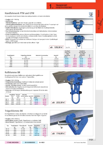 Tragfähigkeit Trägerflanschbreite kleinster Kurvenradius Gewicht Bestell-Nr. Bestell-Nr.