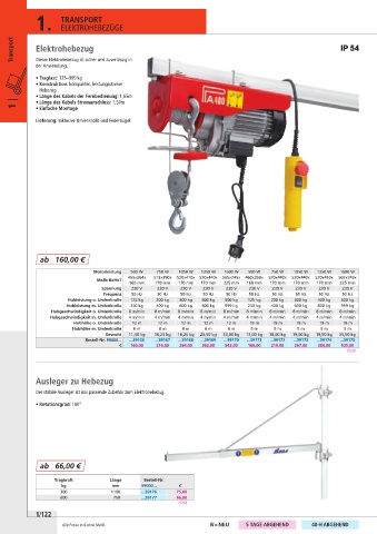 Hubleistung m. Umlenkrolle 250 kg 400 kg 600 kg 800 kg 999 kg 250 kg 400 kg 600 kg 800 kg 999 kg