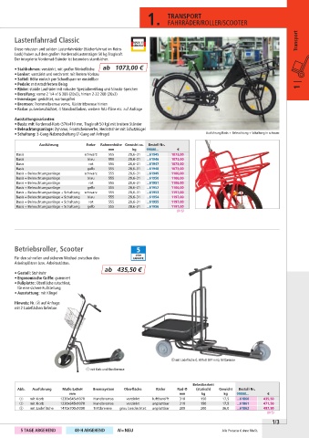 • Basis: mit Vorderrad-Korb (570x410 mm, Tragkraft 50 kg) mit breitem Ständer