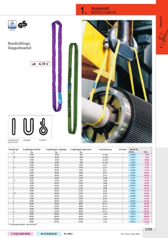 Nutzlänge* Tragfähigkeit direkt Tragfähigkeit umgelegt Tragfähigkeit geschnürt Farbcodierung VE/Stück Bestell-Nr.