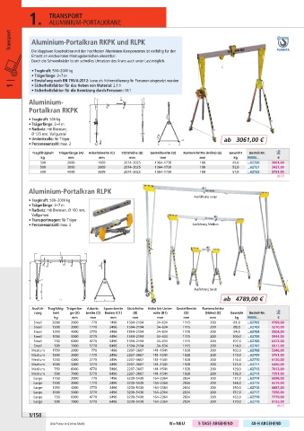 Ausfüh- Tragfähig- Trägerlän- Arbeits- Spannbreite Stützhöhe Höhe bis Unter- Gestellbreite Rasterschritte