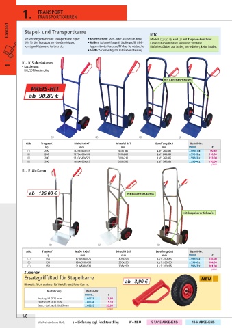 sich für den Transport von Getränkekisten, • Reifen: Luftbereifung mit Stollenprofil, Gleit- Kufen mit abriebfestem Kunststoff verstärkt.