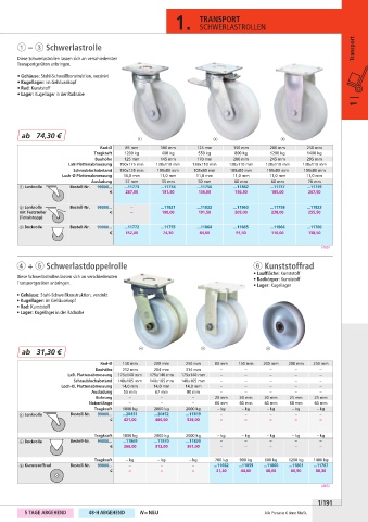 4 + 5 Schwerlastdoppelrolle 6 Kunststoffrad