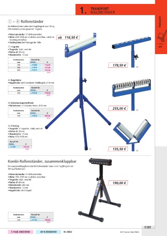 Die zusammenklappbaren Kombi-Rollenständer haben eine Tragfähigkeit von