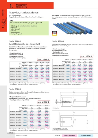 Tragrollenlängen: Fertigung mit fast allen erforderlichen Längen. Auf Anfrage: Die hier abgebildeten Tragrollen stellen nur einen Auszug aus