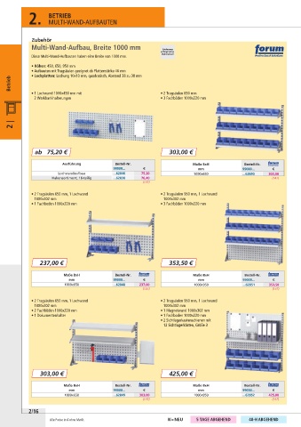 • 2 Tragsäulen 650 mm, 1 Lochwand • 2 Tragsäulen 950 mm, 1 Lochwand