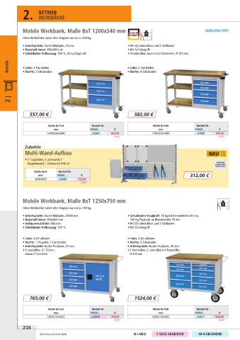 Mobile Werkbank, Maße BxT 1200x540 mm