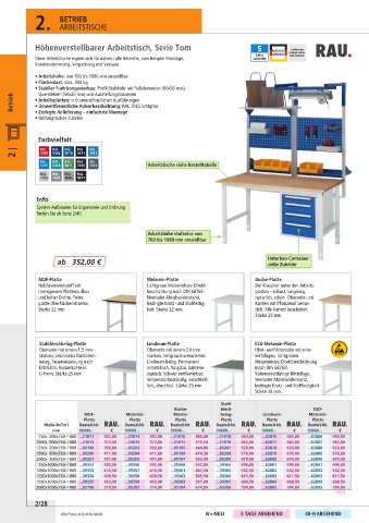 5015 5018 6011 7016 7031 Arbeitstische siehe Bestelltabelle