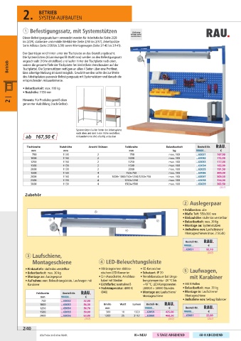 bis 2/29), stationäre und mobile Werkbänke (Seite 2/30 bis 2/37), Arbeitsplätze
