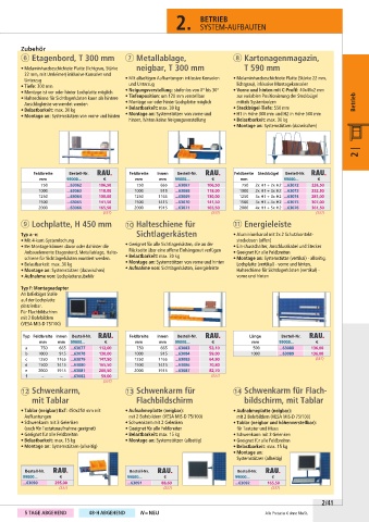 6 Etagenbord, T 300 mm 7 Metallablage, 8 Kartonagenmagazin,