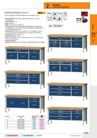 Die Gesamttraglast der Kastenwerkbänke der Serie V beträgt 1500 kg.