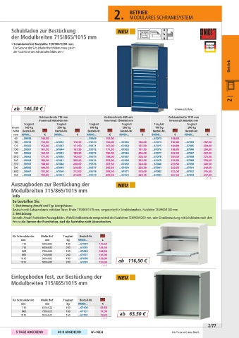 Schrank: Anzahl Fachböden/Auszugsböden, Wahl Schubladensatz entsprechend die Nutzhöhen 720/900/1200 mm, oder Einzelbestückung mit Schubladen nach dem