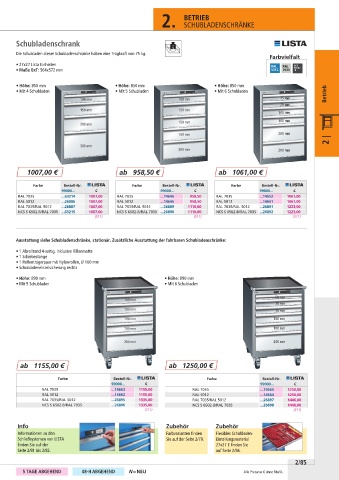 Ausstattung siehe Schubladenschränke, stationär. Zusätzliche Ausstattung der fahrbaren Schubladenschränke: