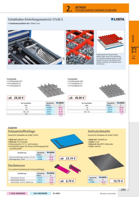 • 2 Trennwände 9 E • 10 Trennbleche 6 E