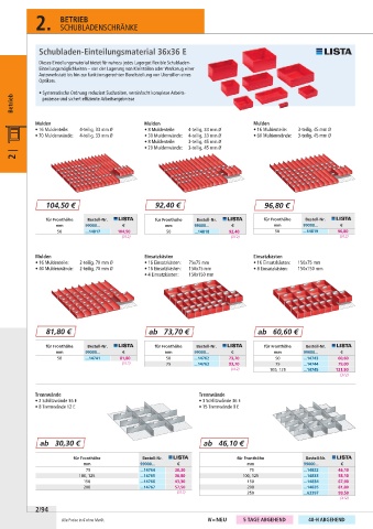 • 8 Trennwände 12 E • 15 Trennwände 9 E