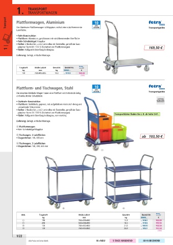 • Räder: Vollgummi-Bereifung in blaugrau, non-marking Transportkisten finden Sie z. B. ab Seite 5/41.
