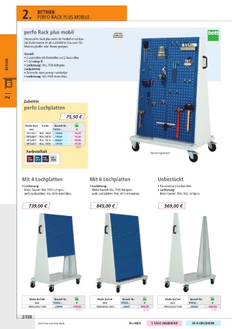 perfo Lochplatten: RAL 5010 enzianblau perfo Lochplatten: RAL 5010 enzianblau Mobil-Gestell: RAL 7035 lichtgrau