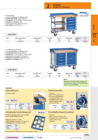 Abb. Außenmaße LxBxH Ladefläche LxB Tragkraft Rad-Ø Eigengewicht Bestell-Nr.