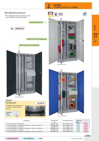2 Lochwandauszüge, 3 Fachböden 1000x600x1950 RAL 7035/RAL 5012 ...61916 1940,00