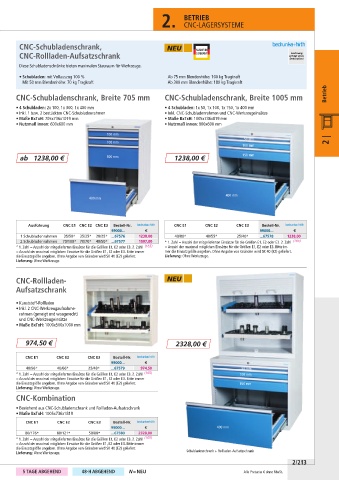 CNC-Schubladenschrank, Breite 705 mm CNC-Schubladenschrank, Breite 1005 mm