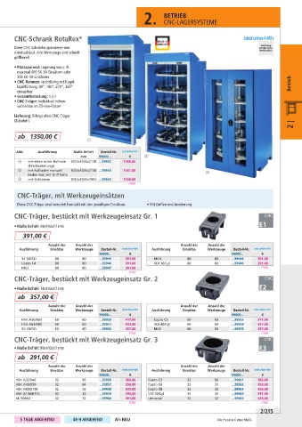 Diese CNC-Träger sind komplett bestückt mit den jeweiligen Einsätzen. • Mit Griffen und Arretierung