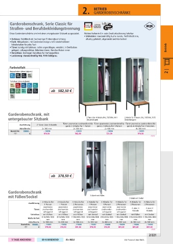 Diese Garderobenschränke sind mit einer untergebauten Sitzbank ausgestattet. Weitere Farben in Ein- oder Zweifarblackierung lieferbar