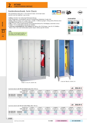 Garderobenschränke mit 150 mm hohen Füßen, Höhe 1850 mm