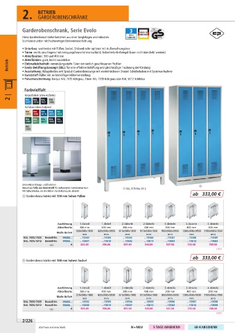 1 Garderobenschränke mit 150 mm hohen Füßen