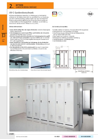 • Jeder Schrank hat 2 Leuchtmittel zur Entkeimung, die das Kleiderfach