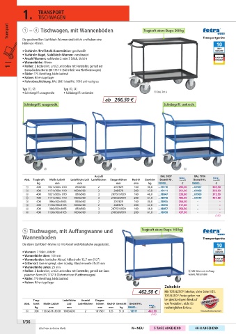 Transport 1 – 4 Tischwagen, mit Wannenböden Tragkraft obere Etage: 200 kg