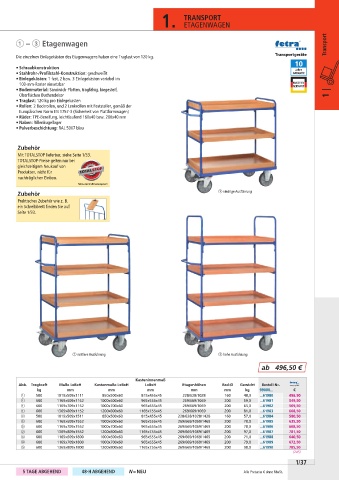 Abb. Tragkraft Maße LxBxH Kastenmaße LxBxH LxBxH Etagenhöhen Rad-Ø Gewicht Bestell-Nr.