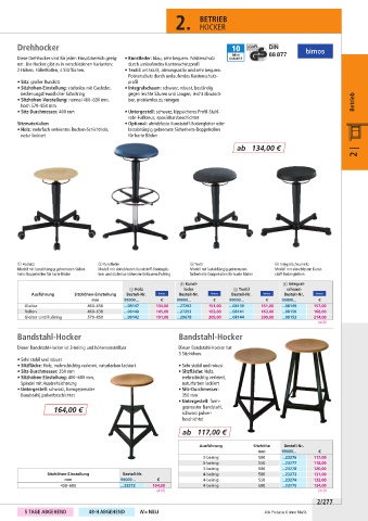 Diese Drehhocker sind für jeden Einsatzbereich geeig- • Kunstleder: blau, sehr bequem. Polsterschutz