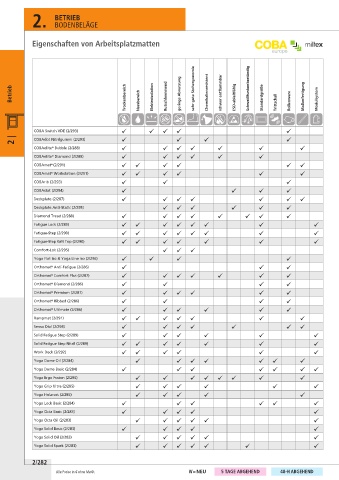 Betrieb Trockenbereich Nassbereich Elektroisolation Rutschhemmend geringe Abnutzung sehr gute Stehergonomie Chemikalienresistent schwer entflammbar ESD-ableitfähig Schweißfunkenbeständig Standardgröße Trittschall Rollenware Maßanfertigung Modulsystem