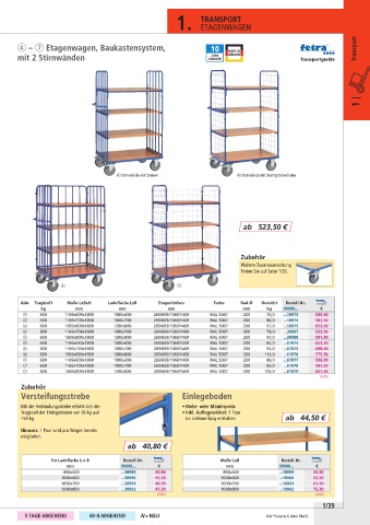 Abb. Tragkraft Maße LxBxH Ladefläche LxB Etagenhöhen Farbe Rad-Ø Gewicht Bestell-Nr.