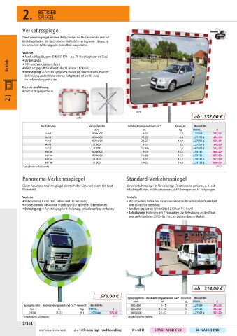Ausführung Spiegelgröße Beobachtungsabstand ca.* Gewicht Bestell-Nr.