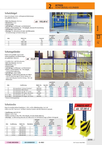 (ohne Abb.) Schutzgeländer gerade, VE 2 Stück 1500 6,0 ...64582 70,70 ...09815 85,10 ...09824 70,70