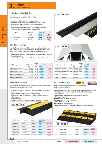 Kabelbrücke kieselgrau 3 St. à 80x 400 16x18 ...39089 88,40 Kabelbrücke schwarz-gelb 80x1500 16x18 ...39096 100,00